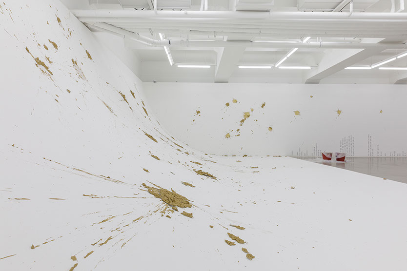 Cho Eunji’s works are centered on the experiments of resetting territory and spiritual boundaries with urban remains such as mud and dust. Cho’s works which have been focused on the “performing act of time” carried out by arts in forms of music, performance, conversation and lecture lead us to encounter an individual and the reality alienated from not only the collective violence but also the collectivization of the violent memories through intermediate space that constantly moves and changes. ‘Dtang’, The Mud Said 2019 was first performed at the National Theater of Korea in 2011, and this is the third version of performance installation work following Dtang performed at Dusseldorf in 2012. The act of throwing mud toward the wall and the sound of “Dtang” resonates at the moment create a powerful moment of experience. For the performance in Dusseldorf, a musical piece that the music director Peter Gahn produced, inspired by Cho’s mud throwing performance, was played with the artist’s narration, clarinet, cello, and piano. The sound she makes while she throws mud on the wall is the sound of gunfire and the performer’s body itself that penetrates the wall.