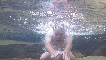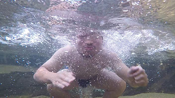 타자의 자리를 또 다른 타자로 자처하기, 혹은 타자를 재현하는 게 아니라 그 경계에 부딪히기로써 조은지 작가는 여기에서 저기로 나아가는 실존-예술적 모험을 감행해 왔다. 가령 조은지 작가의 ⟨별똥별 노래⟩2015는 단지 미아리 텍사스촌의 한 빈집에서 촬영해서가 아니라 그 안의 벽에 진흙을 던지고 뿌리는 행위가 불편한 장소성을 현재 재구성함으로써 특별해지는 작업이다. 타자에 대한 거리 두기를 상쇄하는 몸짓과 움직임은 모종의 심연에 있는 타자를 표면으로 접촉시킨다, 새롭게 구성되는 나의 자리로부터. 한편 조은지의 작업에서, 이름 없는 사물들과 자연은 새롭게 이름을 얻는 반면, 인간들의 이름은 탈각되어 비사물 동맹의 세계가 만들어지고는 했다. 곧 비가시적 또는 불편한 어떤 세계는 보이고 접촉할 수 있는 세계로 번역되었다. ⟨더블 유 더블 미⟩는 지난 작업들에서처럼 주체가 경계를 상실하며 또 다른 주체가 되는 조은지의 생각을 반영한다. 홍천 한 계곡에서 물에 뛰어든 퍼포머의 변형되는 신체는 여러 사진들의 배치로써 드러나며, 고정되지 않은 컷들은 형태의 완성이 아닌 불연속적 시간의 변화를 반영한다. 물론 물은 배경이 아닌 매체이며, 동시에 매체에 그치지 않는 ‘너’, 곧 또 하나의 주체일 것이다. 그리고 여기서 지역은 맞닿으려는 경계의 기호로 출현한다.