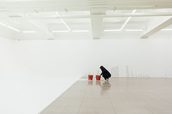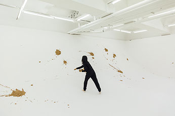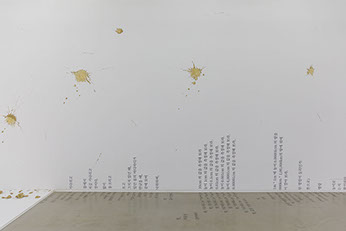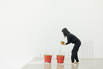 Cho Eunji’s works are centered on the experiments of resetting territory and spiritual boundaries with urban remains such as mud and dust. Cho’s works which have been focused on the “performing act of time” carried out by arts in forms of music, performance, conversation and lecture lead us to encounter an individual and the reality alienated from not only the collective violence but also the collectivization of the violent memories through intermediate space that constantly moves and changes. ‘Dtang’, The Mud Said2019 was first performed at the National Theater of Korea in 2011, and this is the third version of performance installation work following Dtang performed at Dusseldorf in 2012. The act of throwing mud toward the wall and the sound of “Dtang” resonates at the moment create a powerful moment of experience. For the performance in Dusseldorf, a musical piece that the music director Peter Gahn produced, inspired by Cho’s mud throwing performance, was played with the artist’s narration, clarinet, cello, and piano. The sound she makes while she throws mud on the wall is the sound of gunfire and the performer’s body itself that penetrates the wall.