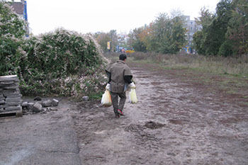 조은지 작가의 Earth Thief 2009는 퍼포먼스를 베이스로한 다큐멘테이션 비디오 작업이다. 이 작업은 베를린이란 도시에서 이루어진 퍼 포먼스로, 이제는 소멸된 그러나 눈에 여전히 가시적인 (베를린장벽과같은) 혹은 그 현상이 여전히 진행중인 수백개의 경계선을 넘나드는 여행의 기록이다. 작가의 이 순환적인 여행동안, 그는 걸어다니며 수많은 공원과 공사장 등에서 체집한 흙을 비닐봉투에 담아 땅에 다시 흘리기를 반복하였다. 70년대생인 작가의 개인적인 역사와 연계짓자면, 작가는 이렇게 이야기한다, “경계선이란것은 언제나 저에게 체화되어 있던것 같아요.”라며 한국의 남한과 북한의 경계를 언급한다. 도시에서 나뉘어진 영역들의 매개는 새롭게 재구성하는 행위로도 보여질수 있다. 즉 작가의 지각으로 창조된 새로운 선(Line)으로 창조되는 자유로운 형태의, 예술적인 ‘영역의 재구성’이 되는 것이다.
