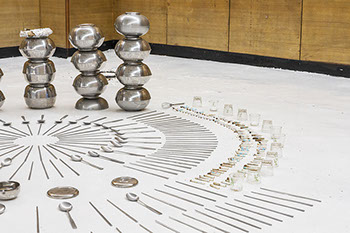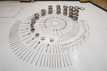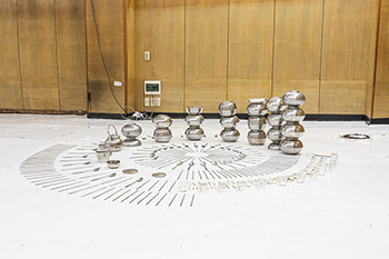 "시계 장인들이 일하는 골목 사이사이 달그락거리는 소리가 들린다. 밥과 차를 배달하는 여성들이다. 이들의 움직임에서 파생된 물건들을 전시장에 펼쳐놓는다. 관객들이 그것을 두드리면 소리를 내는 악기가 되기도 한다. 눈에 보이는 움직임을 지탱하는 보이지 않던 몸짓들이 다시 감각된다. 달그락, 댕그렁, 땡땡 울림 속에서 분명 존재하지만 보이지 않던 이들의 존재가 다양한 감각으로 번져나간다"