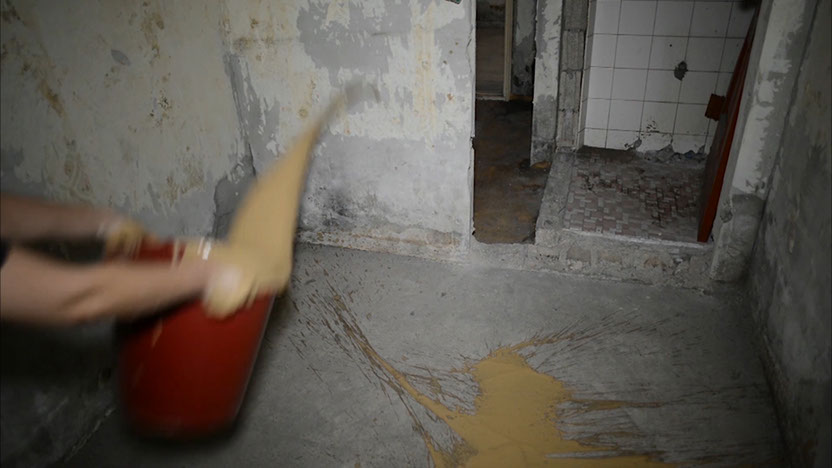 Song for the shooting Star is a video work shot in a red-light district in Seoul which was built in the 1960s, and has since been demolished and fallen into ruin. This place was once called “Miari Texas Village”. Now, it remains as an empty space without articulation, where the windows that divide the inside from the outside and the doors that divided between rooms and corridors have all disappeared. This is a space that is not symbolized or signified. I meet him/her, and a third space is made that is neither him/her nor me. There is no separation of the opposites; it elucidates the inseparability with the other. The act of throwing mud reveals the empty space spit out by the system as it cannot be tamed. It also symbolizes the persistence of the ethical subject that stays persistent without compromise.
