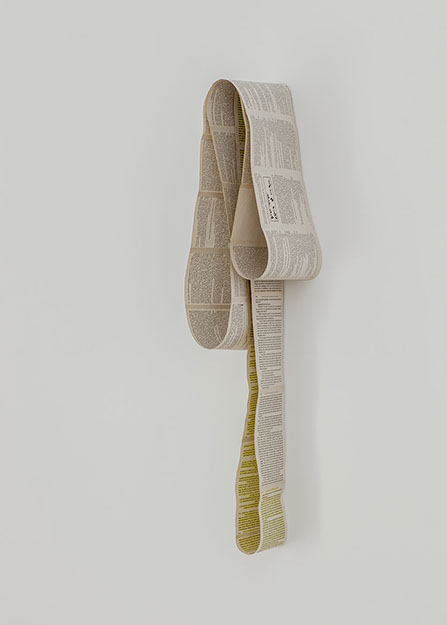 2018, Ink on the found page from the book, 24.1 x 8.2cm (front)