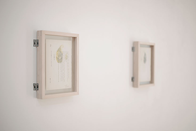 2018, Ink on the found page from the book, 35.2 x 18.5cm(front)