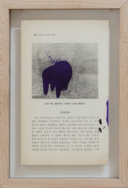 2018, Mixed media on the found page from the book, 24.1 x 8.2cm(back)