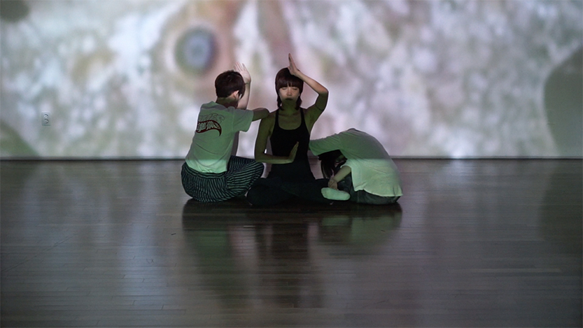 Eunji Cho has experimented with expanding the realm of consciousness and exploring the self, based on the fact that there are various living things other than humans and that they use a different language system. Octopus Song 2018 a performance that expresses the movement of the octopus whose perceptual system to recognize the world is remote from how the human system works. Cho examines multiple selves through the structure of the octopus and shows an imaginary language through the movement of the octopus that she created using intuition gained by observing the octopus. The Octopus Yoga Performance Instructional Version will be screened in the exhibition gallery, and audiences may take time to explore the expansion of consciousness from a new perspective through repeating yoga positions of the video and practicing meditation to expand or reduce the realm of consciousness.