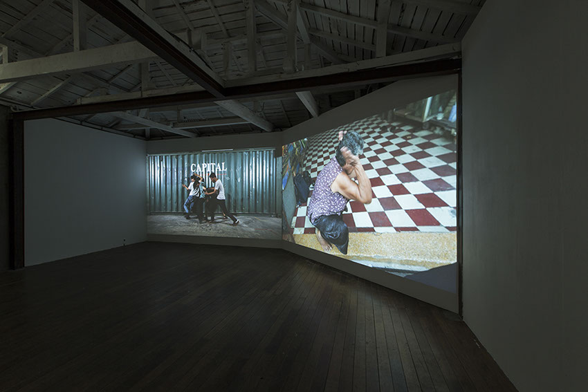 Cho trusts more the physical memory reenacted by movements than a verbalized articulation. She expects that the survivors’ memory can be expanded through the physical movement of a third person. There laid the motivation why she realized the physical memory through the movement of the pantomime performers. They were invited to improvise after viewing the interviews presented by Cho. The artist didn’t intervene during this process and to its results, and omitted deliberately the detailed episodes in the interviews before providing them to the performers to encourage their own interpretation. Thus it is unclear what the performers perceived from the interviews and with what kind of impression they performed, yet we are still able to recognize what they saw from the survivors’ experience, from some of their gestures and expressions.